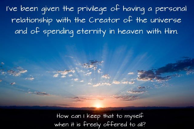 As Peter and John said in the book of Acts, I “cannot but speak the things which [I] have seen and heard”. I've seen his provision for and protection of my family. I've experienced his comfort and peace in the midst of trials. I've been given wisdom when I didn't know the right answers. And most of all I've been given the privilege to have fellowship with the creator of the universe and have the assurance of spending eternity in heaven with him.