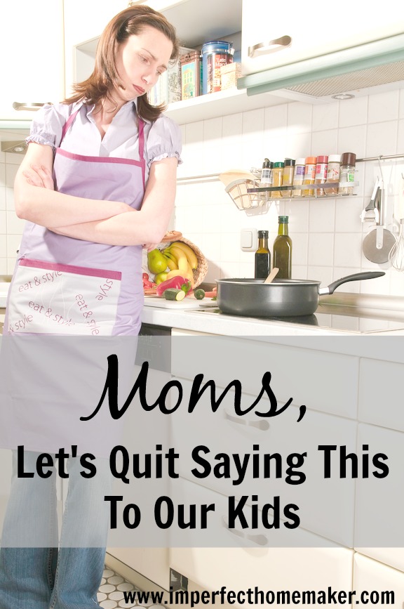 Together, let's get rid of the endless “Not right now”s. Let's not let our children grow up with large blank gaps in their memory where there should have been loving memories of mama spending time with them while dinner got cold on the stove. They'll never remember what dinner tasted like or whether the last load of laundry was folded.