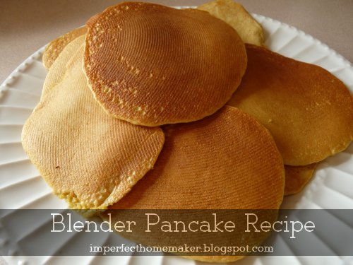 Can I just say that this is great?! I loved the fact that I used only 3/4 cup of my wheat berries rather than a whole bag like I used when I made bread! The wheat berries ground up so much better when they were combined with a liquid, and the pancakes were delicious! I also loved the fact that I could just dump everything into the blender and pour the batter directly onto the griddle.